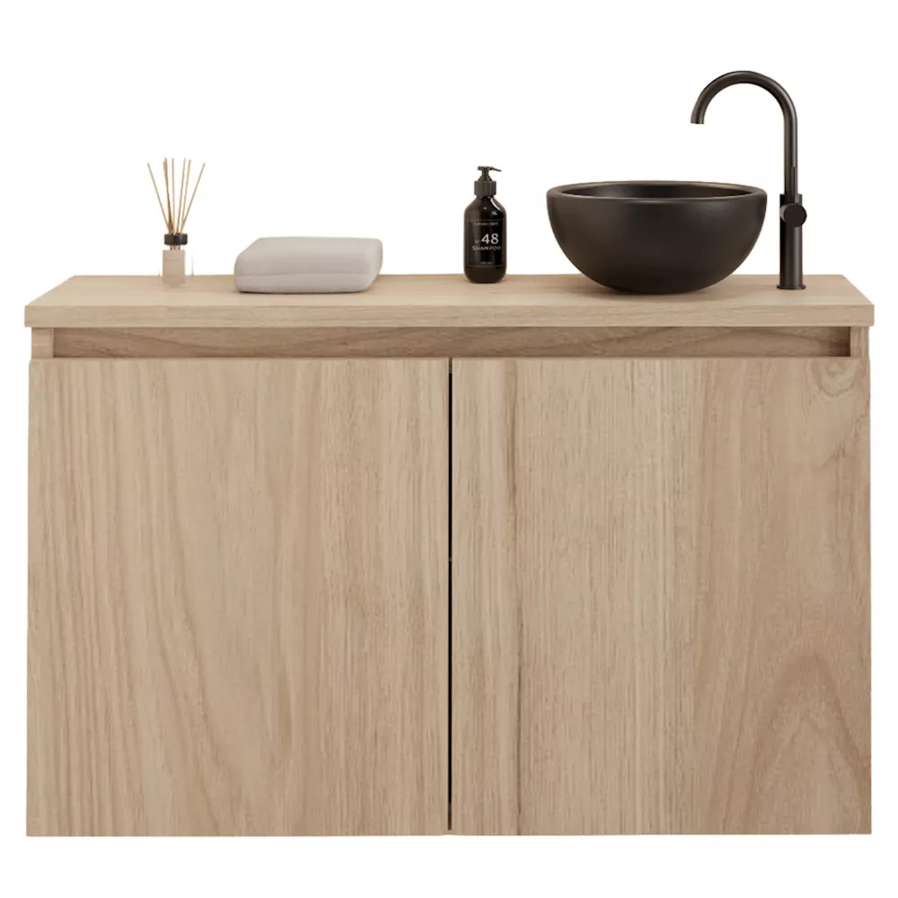 Het Gliss Echo toiletmeubel wordt geleverd met een toppaneel in dezelfde kastanjekleur voor een harmonieus geheel. Wil je een uniek contrast? Combineer de onderkast met een wit of zwart topblad. Daarnaast is dit model ook verkrijgbaar in andere kleuren zoals Mat Zwart, Graphite Grijs, Kasteel Eiken, Choco Eiken en Olijf Groen – en in breedtes van 40, 60, 80 en 100 cm.
