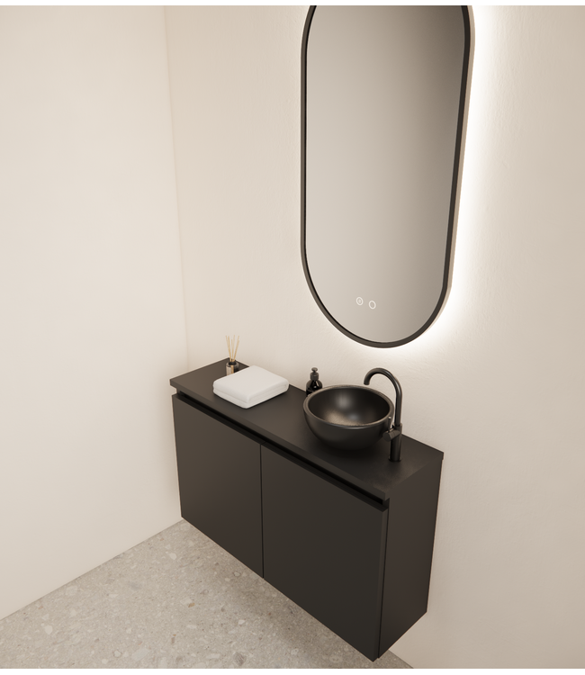 Kies voor een topblad in dezelfde kleur als de onderkast, of ga voor een contrasterend wit of zwart blad voor een extra luxe uitstraling. De fontein wc en kraan bestel je los, volledig afgestemd op jouw smaak.