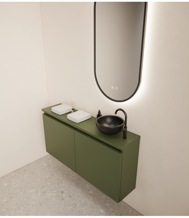 Combineer het meubel met een topblad in dezelfde kleur als de onderkast, of kies voor een contrast met een wit of zwart toppaneel. Voeg een toilet fontein en een bijpassende kraan toe, helemaal afgestemd op jouw persoonlijke stijl – deze zijn los verkrijgbaar.