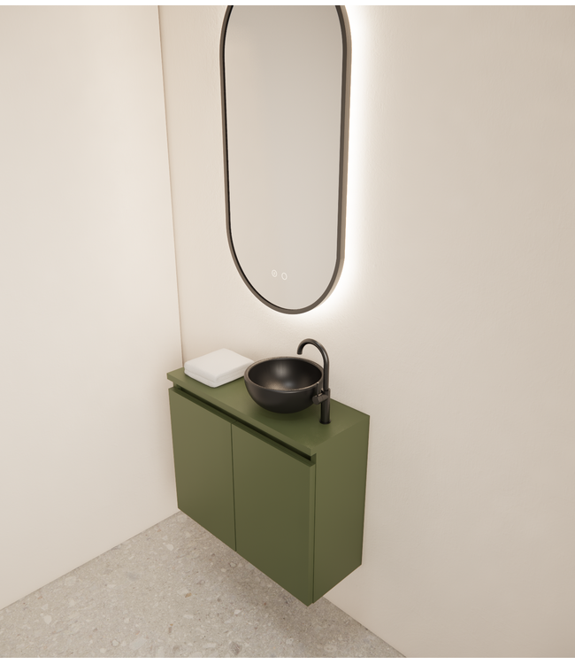 Breng sfeer en stijl in je toiletruimte met het Toiletmeubel Gliss Echo Olijf Groen 60x50cm met toppaneel. Dit compacte en verfijnde wc kastje voegt niet alleen karakter toe aan je interieur, maar biedt ook slimme opbergmogelijkheden voor kleinere ruimtes zoals het toilet of een kleine badkamer.