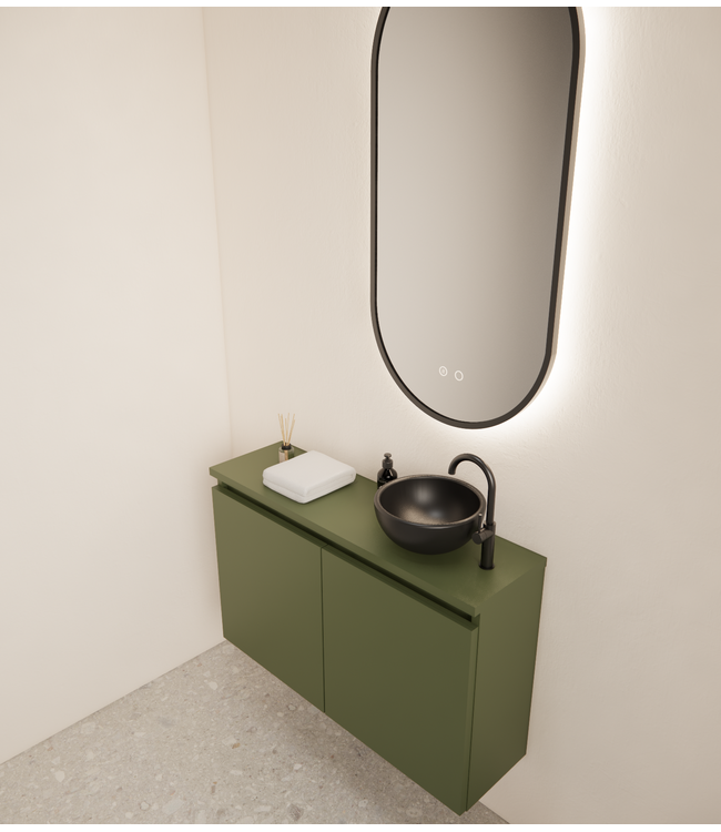 De warme kleur Olijf Groen zorgt voor een natuurlijke uitstraling die prachtig matcht met moderne en landelijke stijlen. Dankzij de afmetingen van 80x50x23 cm biedt deze fonteinkast verrassend veel opbergruimte. Achter de twee deuren met hoogwaardige DTC soft-close scharnieren en push-pull systeem vind je twee ruime vakken voor bijvoorbeeld handdoeken, toiletpapier of schoonmaakspullen.