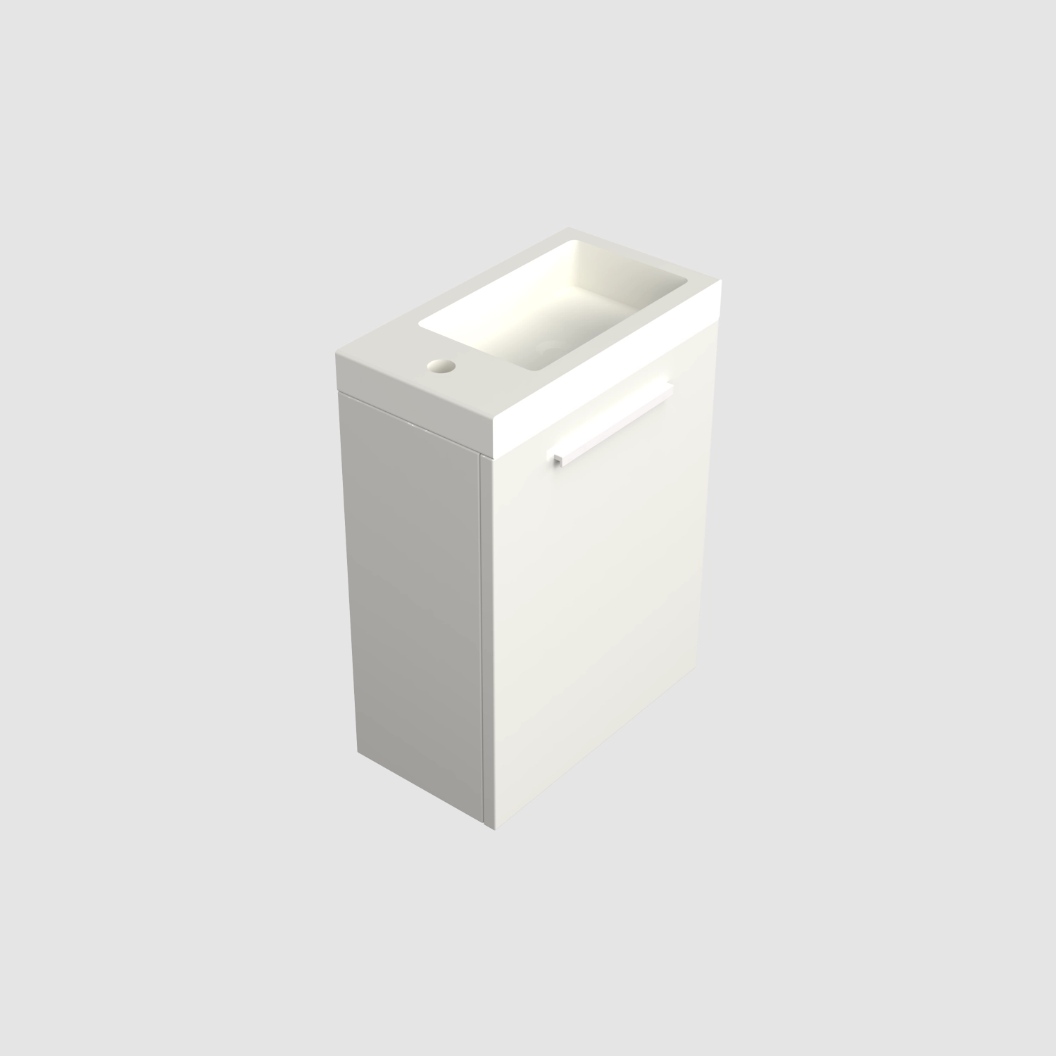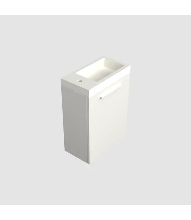 Het meubel wordt geleverd zonder wastafel, zodat je zelf de perfecte match kunt kiezen. Optioneel is een fonteintje verkrijgbaar met kraangat dat omkeerbaar is voor optimale plaatsing. Zo stel je jouw toiletmeubel samen precies zoals jij het wilt.