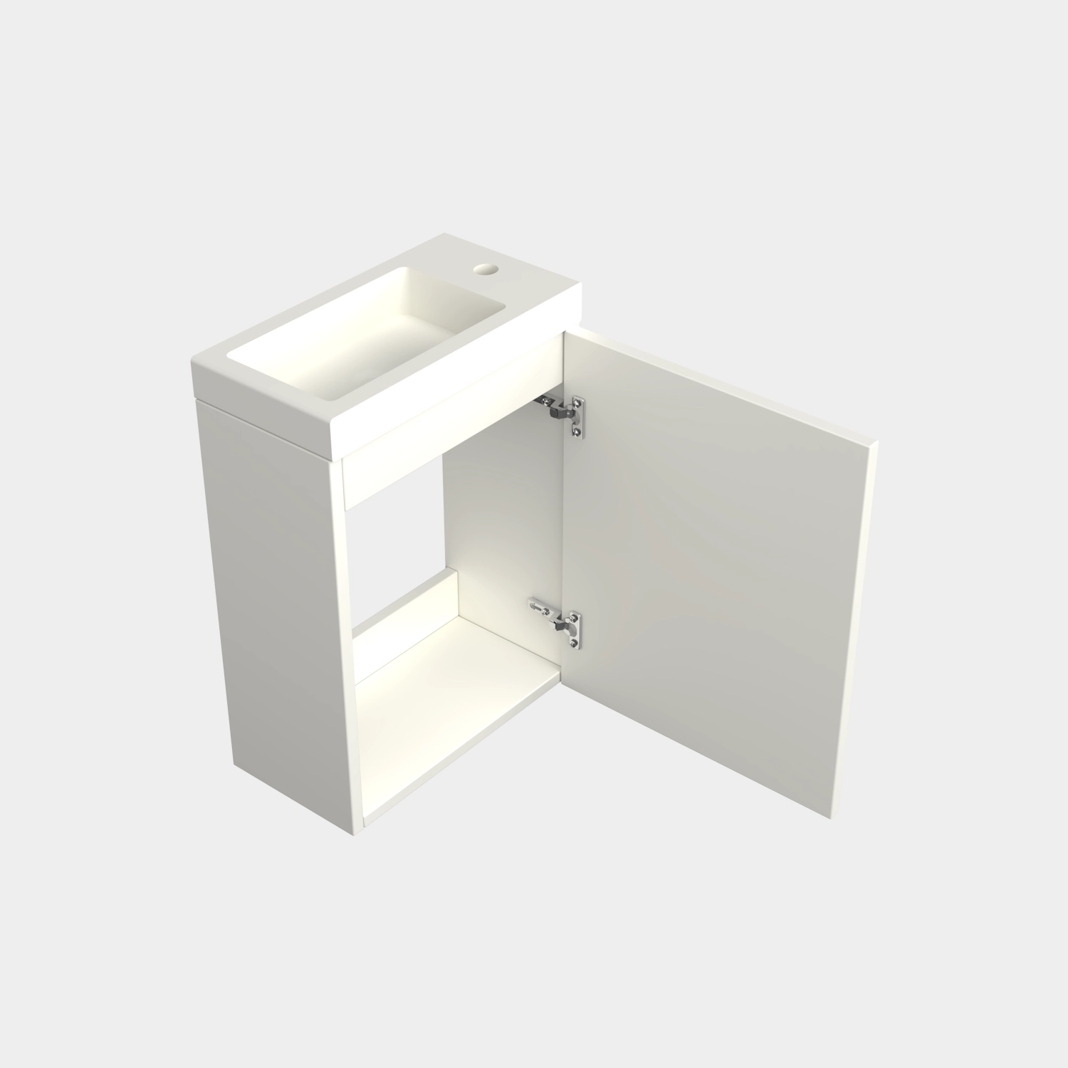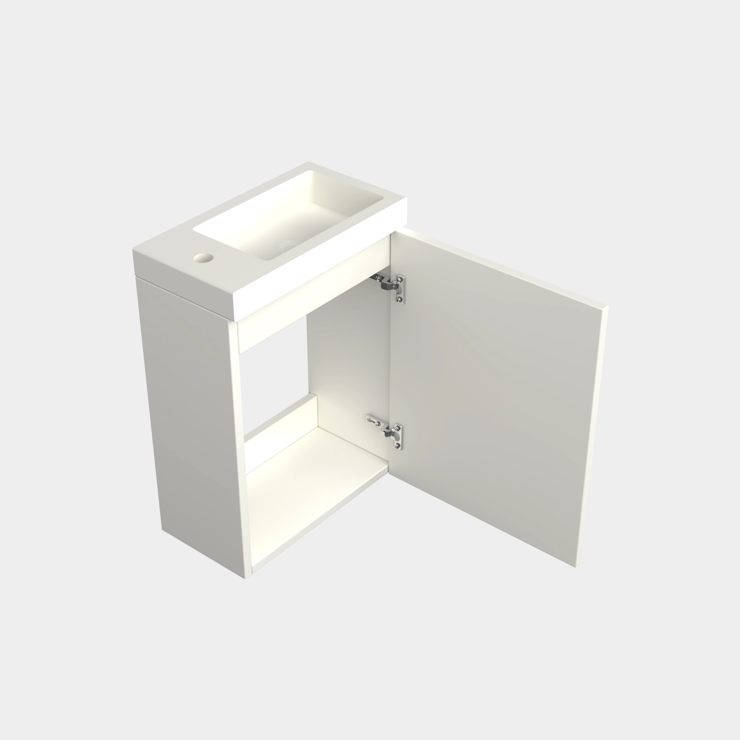 Dankzij de omkeerbare deur (links- of rechtsdraaiend) plaats je het meubel exact zoals het voor jouw ruimte het beste uitkomt. Bovendien kun je optioneel een bijpassend fonteintje met omkeerbaar kraangat bijbestellen, zodat je ook hier volledige flexibiliteit hebt in installatie.