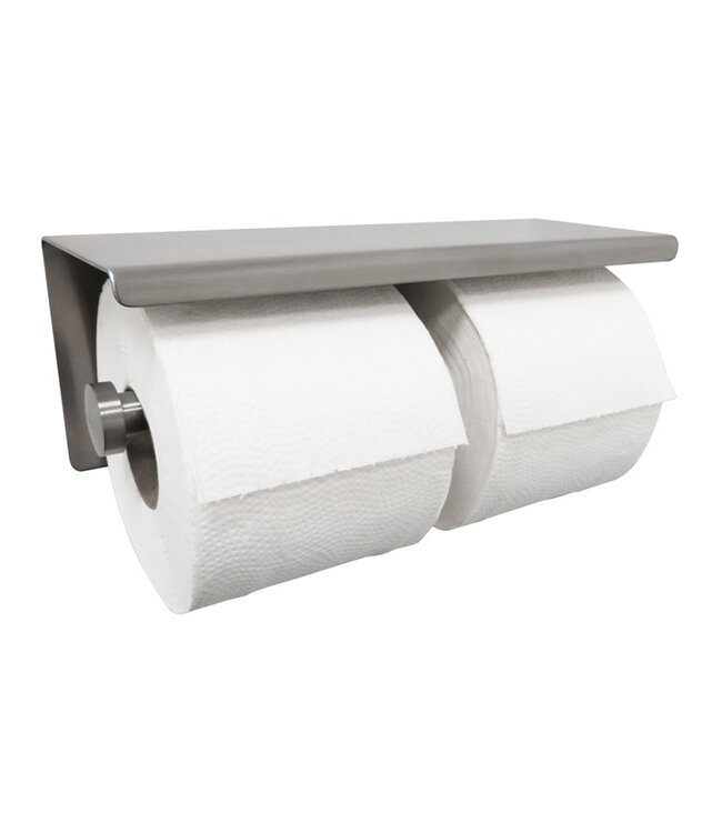 Dubbele Toiletrolhouder met planchet ✓ RVS kleur ✓ Incl montage materiaal ✓ Materiaal 304-roestvrijstaal Lees meer.