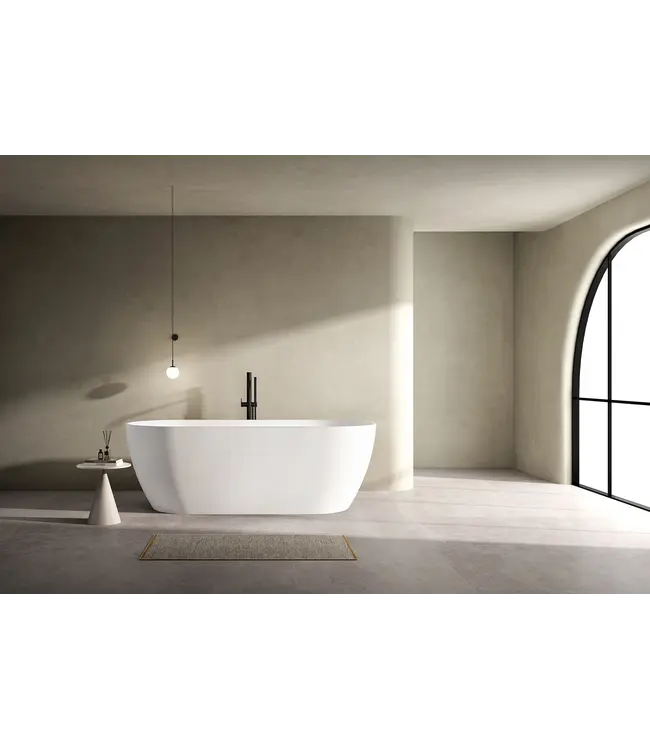 Het Vrijstaand Bad Moon is niet alleen een esthetisch statement, maar ook een praktische keuze. Met het afvoergat in het midden en inbegrepen poten set is de installatie eenvoudig en probleemloos. Bovendien is dit bad compatibel met een afzonderlijk verkrijgbare sifon, waardoor je badervaring nog comfortabeler wordt.