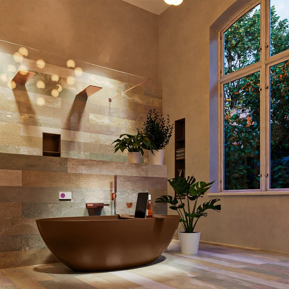 Creëer een badkamer die rust en sereniteit uitstraalt met het vrijstaand bad Mondiaz Float. Dit losstaand bad is een echte blikvanger, ontworpen om uw dagelijkse badritueel te transformeren in een moment van ultieme ontspanning. Het bad onderscheidt zich door zijn unieke, roestbruine kleur die diepte en karakter aan uw ruimte geeft. Dit is de perfecte keuze voor iedereen die een chique badkamer wil creëren die zowel modern als tijdloos aanvoelt.