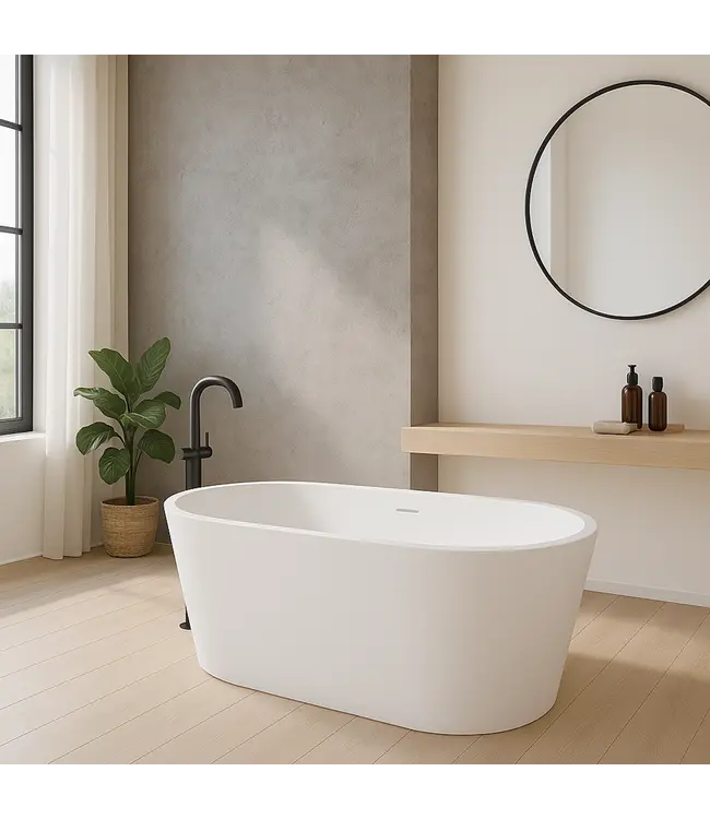 De glanzend witte afwerking zorgt voor een moderne en verfijnde uitstraling die perfect past in zowel minimalistische als luxe badkamerstijlen. Dit vrijstaand bad is niet alleen een genot om in te baden, maar vormt ook een stijlvolle blikvanger die direct de sfeer in de ruimte verhoogt.