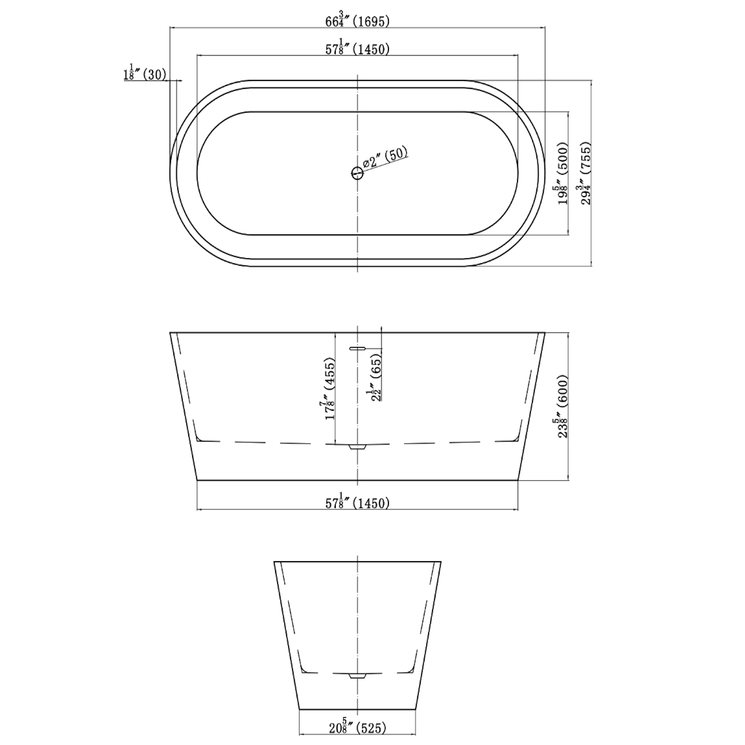 Vrijstaand bad Murano Mat Wit 170x75x58cm acryl met waste en overloop