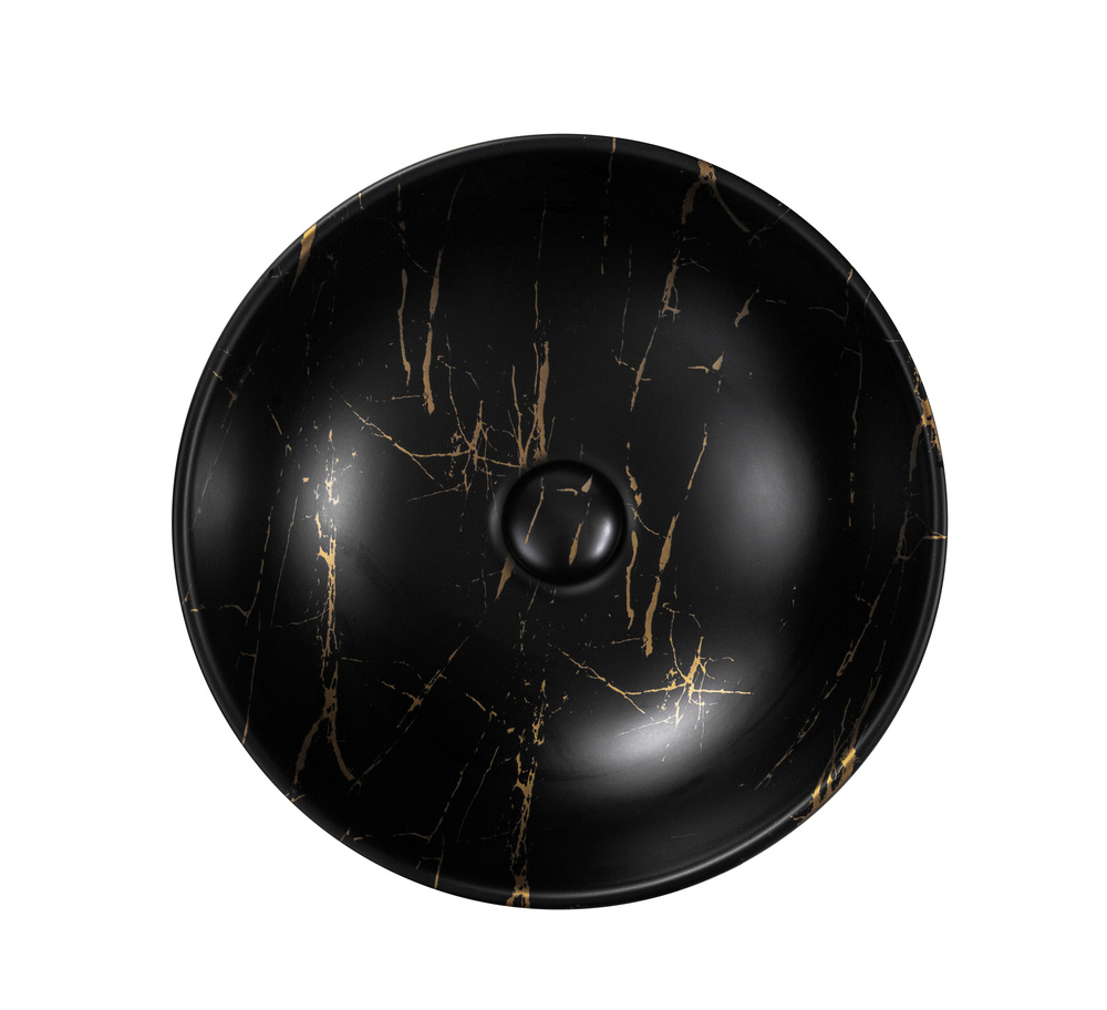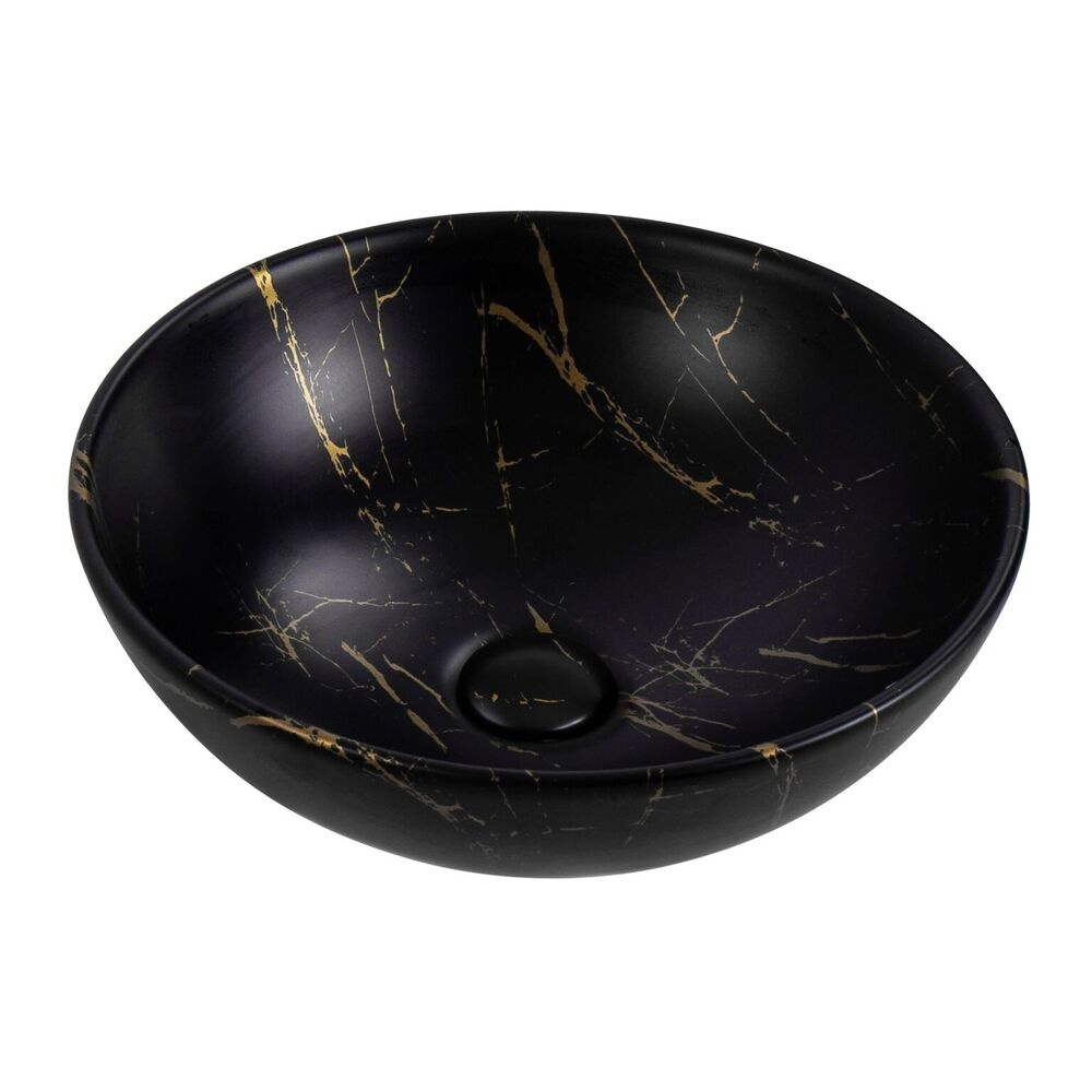Waskom Marmerlook Aloni Tivra Rond Zwart / Goud marmer 38x13 cm incl. afvoerplug