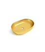 De glanzend gouden afwerking maakt deze waskom tot een blikvanger in elk modern badkamermeubel. Het ovale ontwerp straalt rust en verfijning uit, terwijl het hoogwaardige keramiek zorgt voor een onderhoudsvriendelijk oppervlak. Deze waskom ovaal is poriënvrij, eenvoudig schoon te houden met groene zeep, en behoudt zijn glans jarenlang. Let op: gebruik geen agressieve schoonmaakmiddelen om het oppervlak mooi te houden.