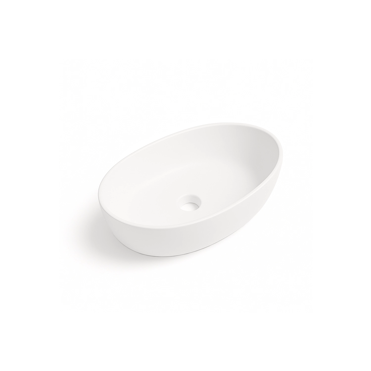 Met zijn strakke, matte uitstraling en zachte ovale vorm voegt deze waskom een moderne en serene touch toe aan elke badkamer. Door het ontbreken van een kraangat en overloop geniet je van een minimalistische look die makkelijk te combineren is met een hoge opbouwkraan of wandkraan. Kies voor stijl én kwaliteit, voor een zeer scherpe prijs.
