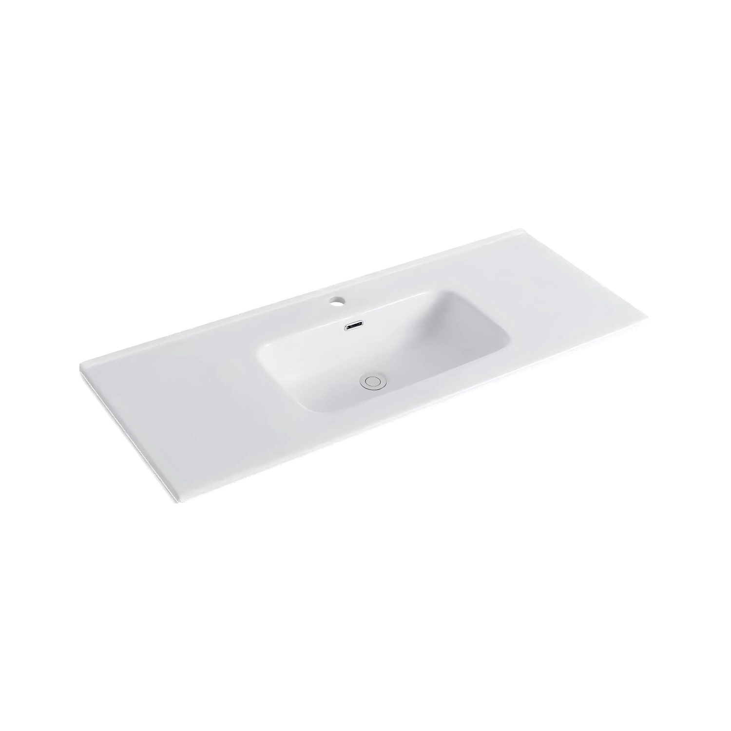 Deze hoogwaardige keramische wastafel van 120 cm is speciaal ontworpen voor montage op een badmeubel onderkast en biedt de perfecte balans tussen design, duurzaamheid en gebruiksgemak. Dankzij de glans witte afwerking, het enkele kraangat en de ovale voorgevormde kuip past deze wastafel moeiteloos in moderne, tijdloze en luxe badkamerstijlen.