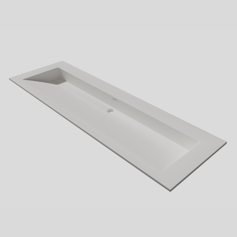 Deze elegante en moderne wastafel is vervaardigd uit hoogwaardig Solid Surface materiaal, afgewerkt in een strakke mat witte kleur (Silk). Met een royale afmeting van 140 × 47 cm biedt deze wastafel voldoende werkruimte en functionaliteit, ideaal voor grotere badkameropstellingen of dubbele badkamers die één diepe, enkele bak gebruiken. De wastafel heeft geen vooraf geboorde kraangaten, wat maximale flexibiliteit geeft bij het kiezen van je kraaninstallatie.