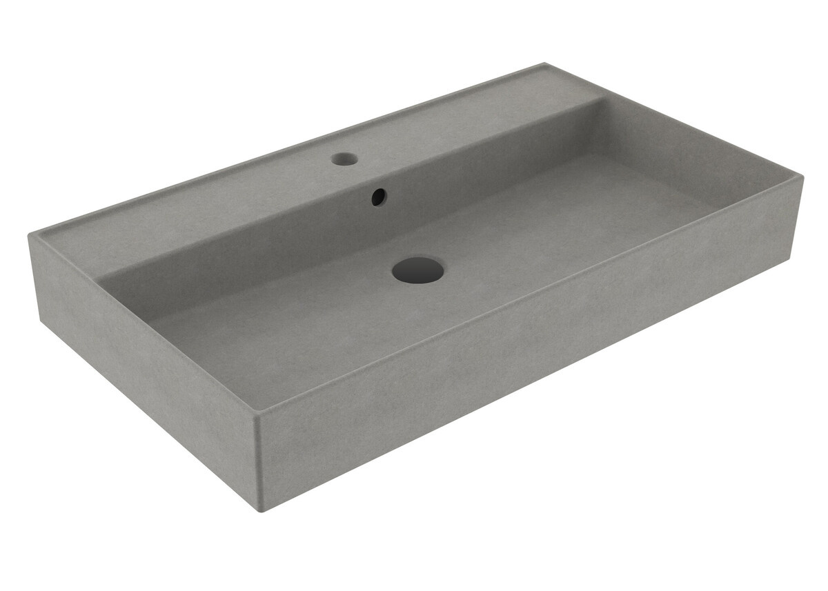 Wastafel 80 cm Edge Mat Beton Grijs met kraangat Keramiek ronde overloop