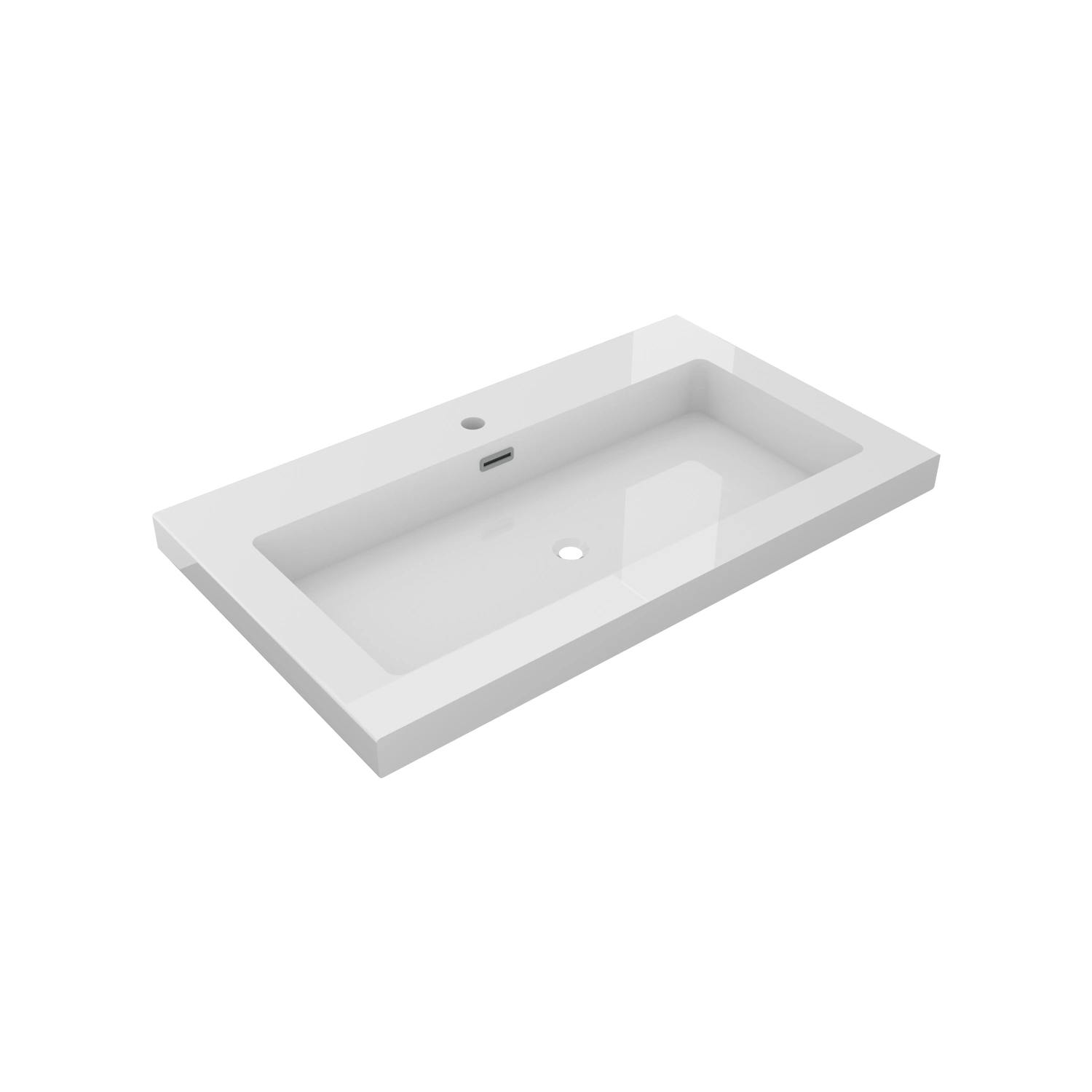 Wastafel Atlanta 80x46x5cm Glans Wit - Kraangat 0-1 - Kunstmarmer