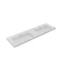 Deze dubbele wastafel badkamer is vervaardigd uit hoogwaardig kunstmarmer en voorzien van een luxe overloopkapje. De wasbakken zijn optioneel leverbaar met 0, 1 of 2 kraangaten, waardoor je volledige vrijheid hebt in je kraankeuze. De wastafel is niet vrij ophangbaar en dient gecombineerd te worden met een bijpassende onderkast – perfect voor extra opbergruimte én stabiliteit.