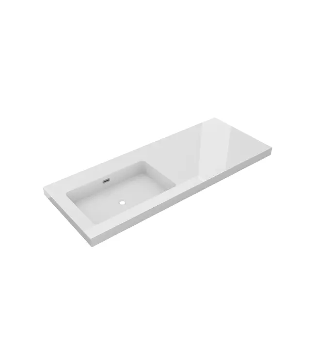 DutchLine Wastafel Atlanta Enkele wasbak Links 120x46x5cm Glans Wit - zonder kraangat - Kunstmarmer