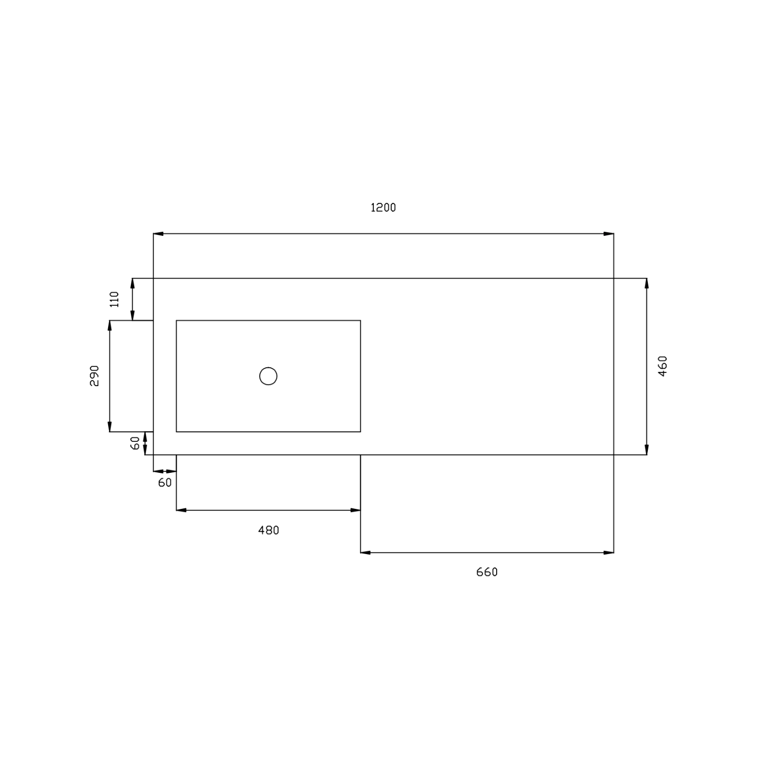 Wastafel Atlanta Enkele wasbak Links 120x46x5cm Glans Wit - zonder kraangat - Kunstmarmer