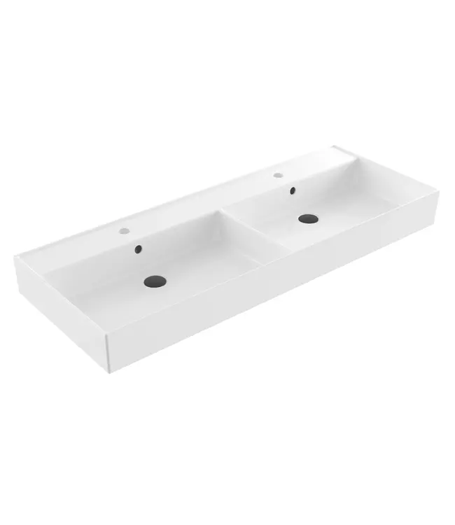 Met zijn afmetingen van 120x46x12 cm biedt de Badkamer wastafel Edge dubbele wasbak jou alle ruimte die je nodig hebt. Of je nu met meerdere gezinsleden de badkamer deelt of gewoon graag de luxe van een dubbele wastafel wilt ervaren, dit dubbele wasbak past perfect bij jouw behoeften. De rechthoekige vorm en glanzend witte kleur voegen een vleugje moderniteit toe aan elke badkamer.