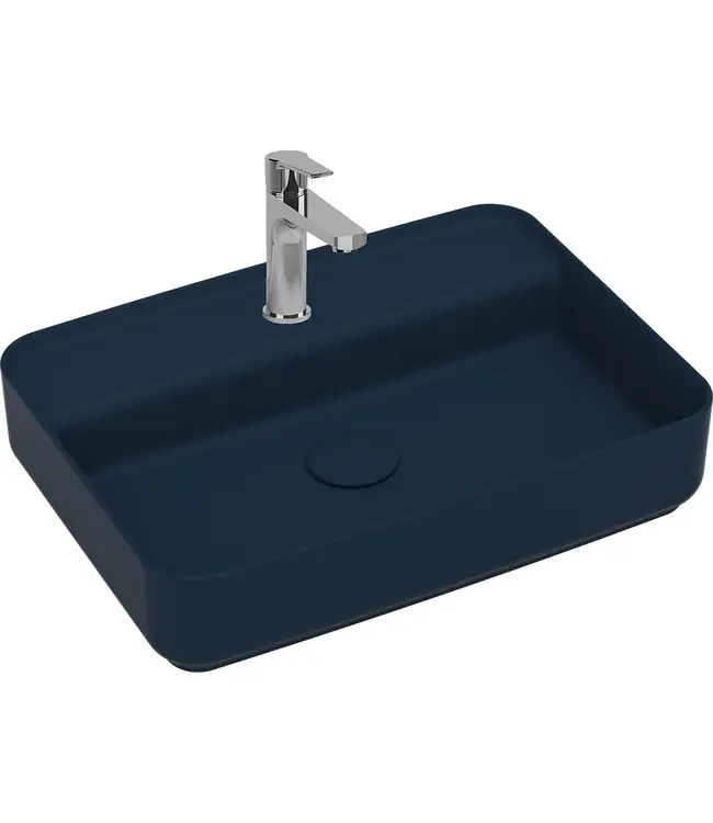Wastafel Infinity Mat Blauw ✓ 55x40x12 cm ✓ Keramiek ✓ Met kraangat ✓ Zonder overloop ✓ incl.meegekleurde afvoerdop ✓ Verkrijgbaar in 9 kleuren Lees meer.