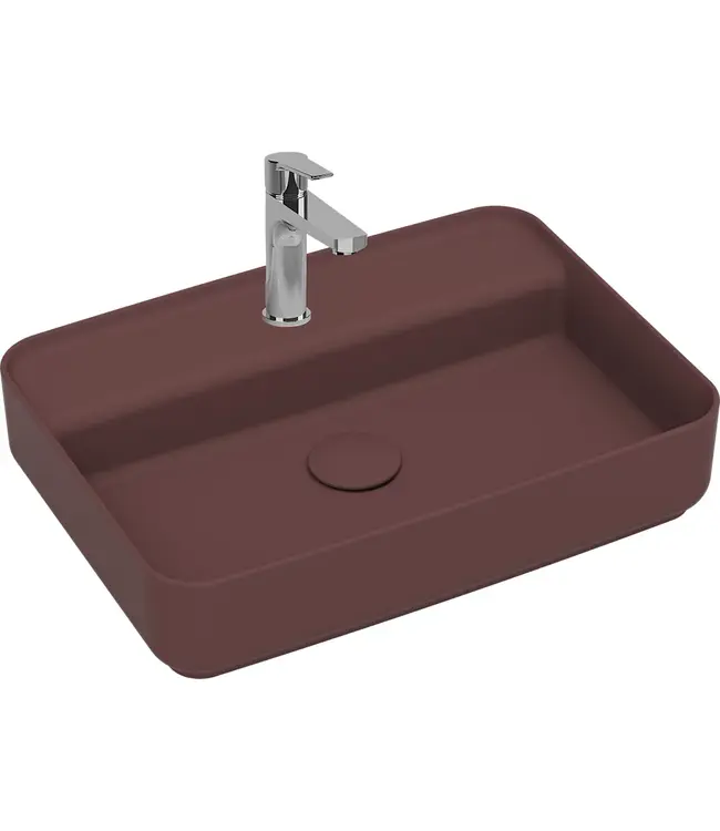 Wastafel Infinity Mat Bordeaux Rood ✓ 55x40x12 cm ✓ Keramiek ✓ Met kraangat ✓ Zonder overloop ✓ incl.meegekleurde afvoerdop ✓ Verkrijgbaar in 9 kleuren Lees meer.