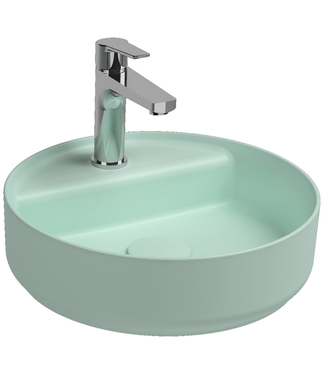 Wastafel Infinity Rond Mat Mint Groen ✓ 42x42x12 cm ✓ Keramiek ✓ Met kraangat ✓ Zonder overloop ✓ incl.meegekleurde afvoerdop ✓ Verkrijgbaar in 9 kleuren Lees meer.