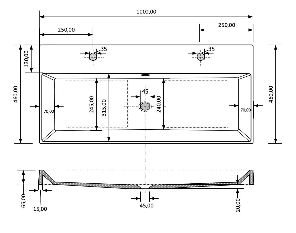 Deze wasbak badkamer is vervaardigd uit Cast Marble, een duurzaam materiaal dat bekendstaat om zijn gladde afwerking en solide structuur. De matzwarte kleur geeft de wastafel een luxueuze uitstraling en maakt hem eenvoudig te combineren met diverse badkamerstijlen.