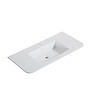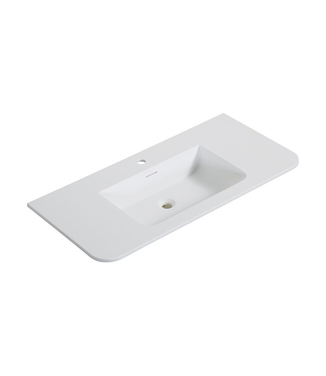 De Laro wastafel is ontworpen voor de badkamer waar rust en geometrische precisie de boventoon voeren. Met een breedte van 100 cm biedt dit meubelstuk royale afzetruimte zonder massief te ogen, geholpen door de verfijnde randafwerking die typerend is voor minerale composieten.