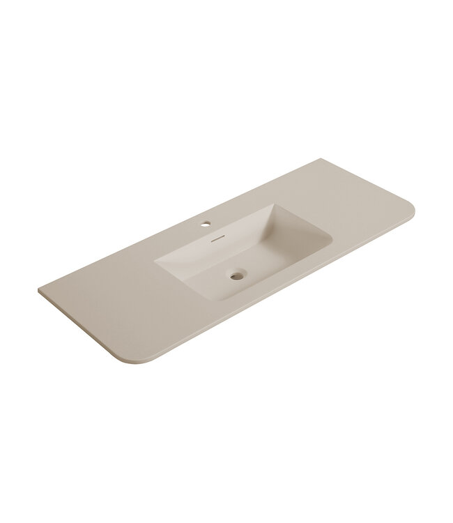 Geef jouw badkamer een minimalistische en luxe upgrade met de Laro wastafel. Met zijn royale breedte van 120 cm en de verfijnde beige finish is dit het ultieme statement-stuk voor de moderne badkamer. De elegante ronde hoeken en het naadloze design zorgen niet alleen voor een zachte uitstraling, maar maken de wastafel ook een droom om schoon te houden.