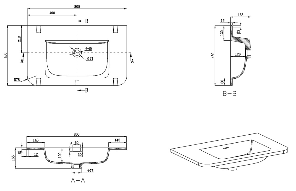 | Afmetingen Wastafel | 80 x 48 x 1,5 cm |