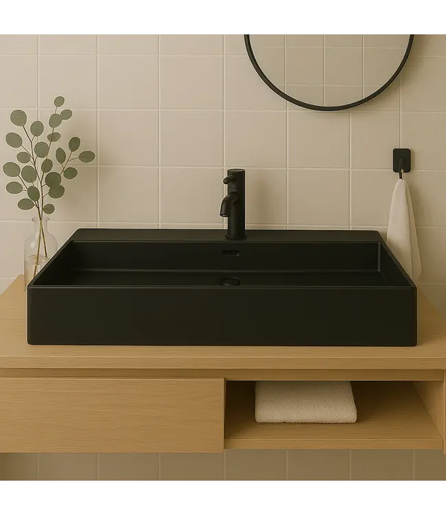 De Tight is een opbouw wasbak, wat betekent dat deze ideaal te combineren is met een onderkast of een los blad. Hierdoor heb je talloze designmogelijkheden, ook voor kleinere badkamers. De wastafel is bovendien verkrijgbaar in Mat Zwart of Glans Wit, waardoor je eenvoudig een look kiest die past bij jouw smaak.