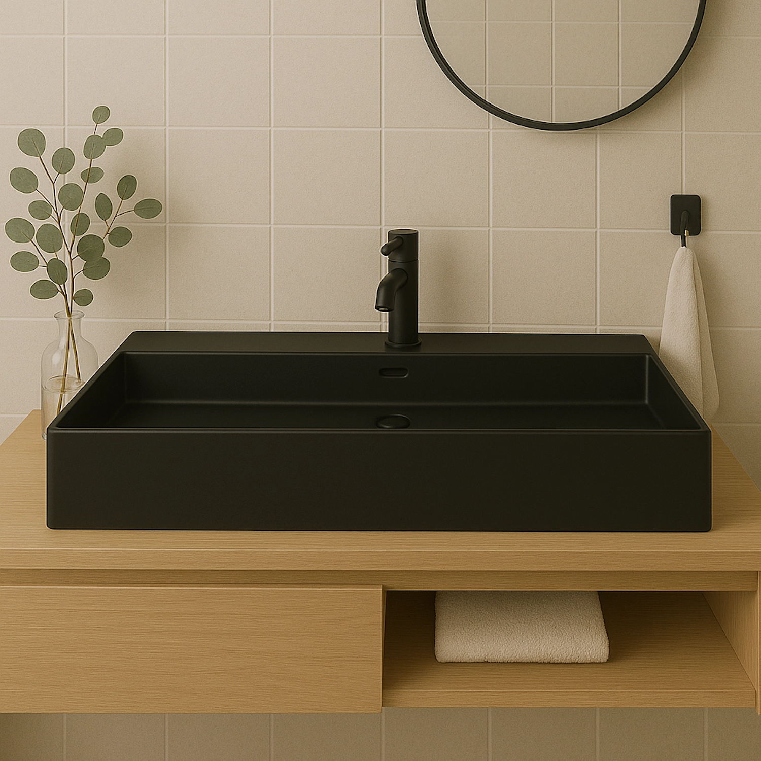 Wastafel Tight 100x47x15cm Mat Zwart met kraangat – Keramisch
