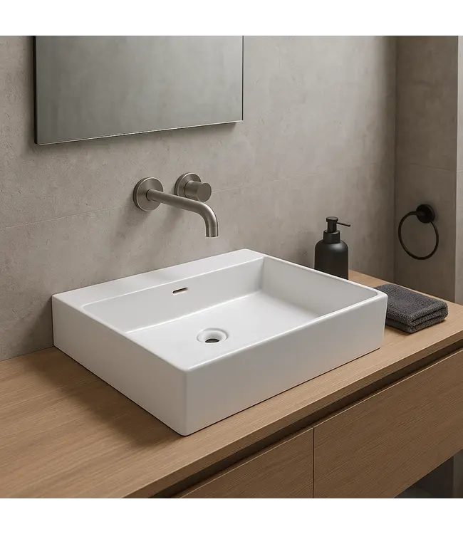 Dankzij de compacte afmetingen van 60x47x15 cm past deze wastafel uitstekend op een bijpassende onderkast of op een badkamerblad. Let op: dit model is niet vrij ophangbaar. De glans witte afwerking zorgt voor een frisse en tijdloze look die in vrijwel elke badkamerstijl past.