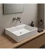 Doordat deze wastafel zonder kraangat geleverd wordt, kun je deze stijlvol combineren met een opbouwkraan. Wil je liever wél een kraangat? Dan is er ook een variant mét kraangat beschikbaar.