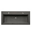 Deze wastafelblad is gemaakt van Beton. Beton is een sterk materiaal met een lange levensduur en maakt een absolute gebruiksgemak mogelijk. Het blad heeft een donker grijze kleur.