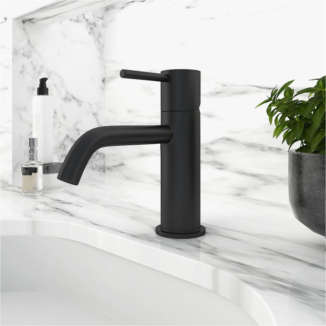 Wastafelkraan Laag Donna Mat Zwart Mengkraan SaniPro Lux Rond 1 Greeps Opbouw