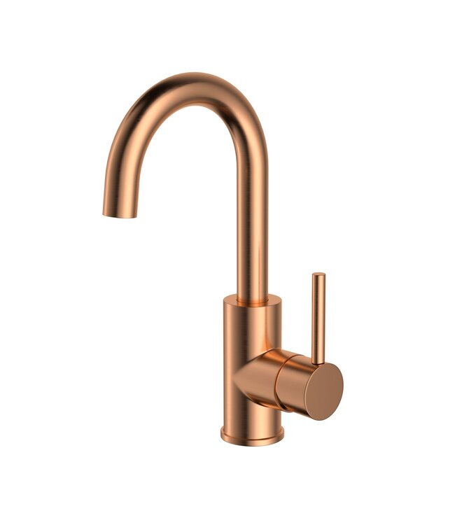Geef je badkamer of keuken een luxueuze uitstraling met de Ensy Geborsteld Koper wastafelkraan. Dit stijlvolle model combineert een verfijnde matte finish met hoogwaardige materialen voor een langdurige en betrouwbare werking. De kraan is vervaardigd uit massief messing en voorzien van een zinken handgreep, wat garant staat voor duurzaamheid en stabiliteit.