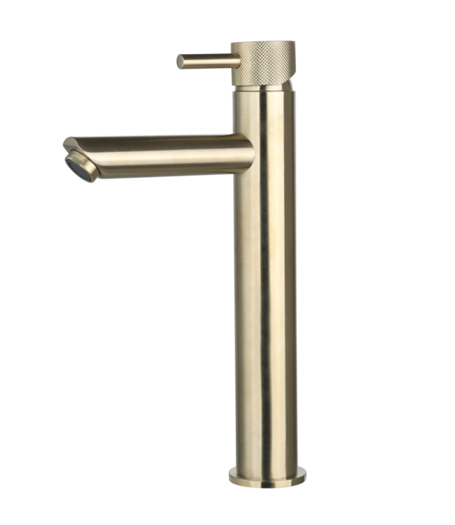 Met de Opbouw Wastafelkraan Ribbed Geborsteld Goud 30cm haal je een eyecatcher in huis die jouw badkamer een luxe uitstraling geeft. Combineer deze kraan met andere producten uit dezelfde serie om je bestelling compleet te maken. Denk bijvoorbeeld aan een badkraan, een opbouw of inbouw regendouche set en een fonteinkraan, allemaal met hetzelfde geribbelde motief en in dezelfde prachtige geborsteld gouden kleur.