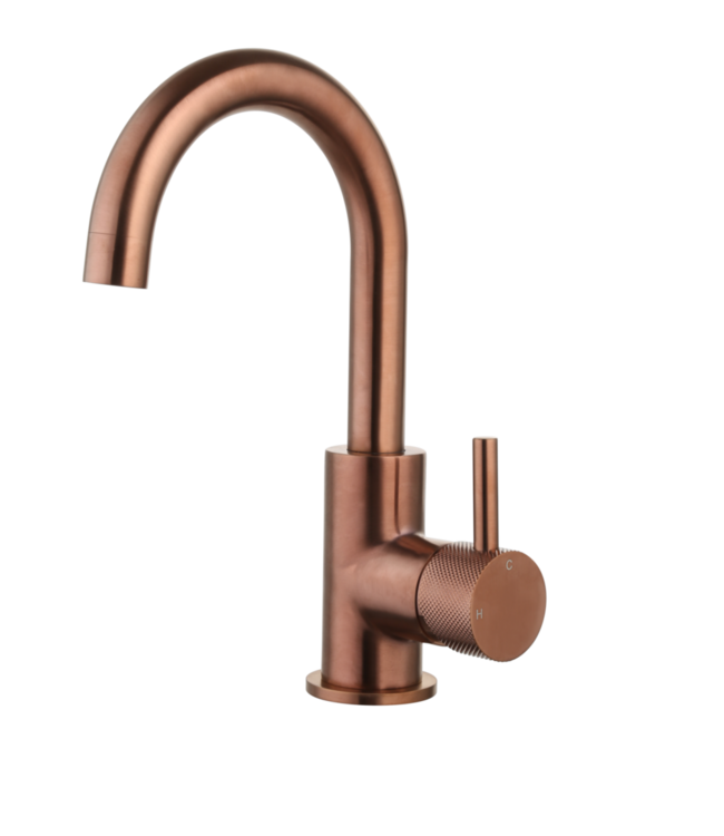 De Wastafelkraan Ribbed Largo Koper Brons met draaibare uitloop is een prachtige toevoeging aan jouw badkamerinterieur. Deze opbouw wastafelkraan is niet alleen functioneel, maar ook een stijlvolle eyecatcher. Met zijn unieke ribbel motief geeft deze kraan een moderne en trendy uitstraling aan jouw wastafel.