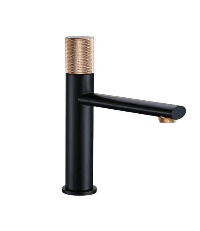 Kies voor de Wastafelkraan Ribbed Lux Mat Zwart - Koper en voeg een vleugje luxe en stijl toe aan je badkamer. Bestel nu bij Sani4Comfort.nl en geniet van hoogwaardige kwaliteit en een uniek design.