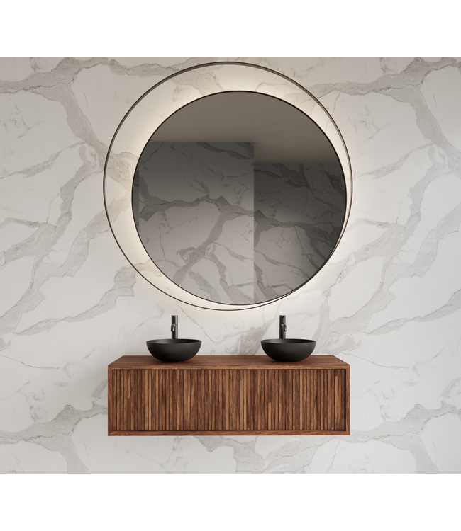 Dankzij de retro verticale ribbels en de warme walnootkleur past dit wastafel meubel in vrijwel elke badkamerstijl. Combineer de Gliss Heronimus met een passende wastafel en creëer een unieke en luxe sfeer in jouw badkamer.