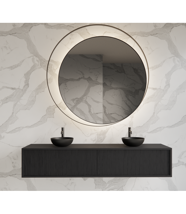Een stijlvolle wastafelonderkast kan jouw badkamer een luxe en unieke uitstraling geven. Met de Gliss Heronimus Wastafelonderkast van 200cm breed in de kleur Black Veneer, voeg je een echte blikvanger toe aan je badkamermeubelcollectie. Deze onderkast wastafel is niet alleen modern, maar dankzij de retro look met verticale ribbels straalt het meubel ook karakter en elegantie uit. De donkere accenten tussen de ribbels benadrukken deze stijl nog meer.