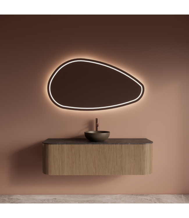 Met zijn geribbelde front, afgeronde zijkanten (Curve) en ambachtelijk geolied fineer is dit badmeubel een blikvanger die perfect aansluit bij de nieuwste badkamermeubel trends. De afmeting van 140x46x37 cm biedt royale opbergruimte, zonder in te boeten op stijl. Dankzij één diepe lade met push-pull systeem van Blum en softclose geniet je van optimaal gebruiksgemak zonder storende greepjes of inkepingen.