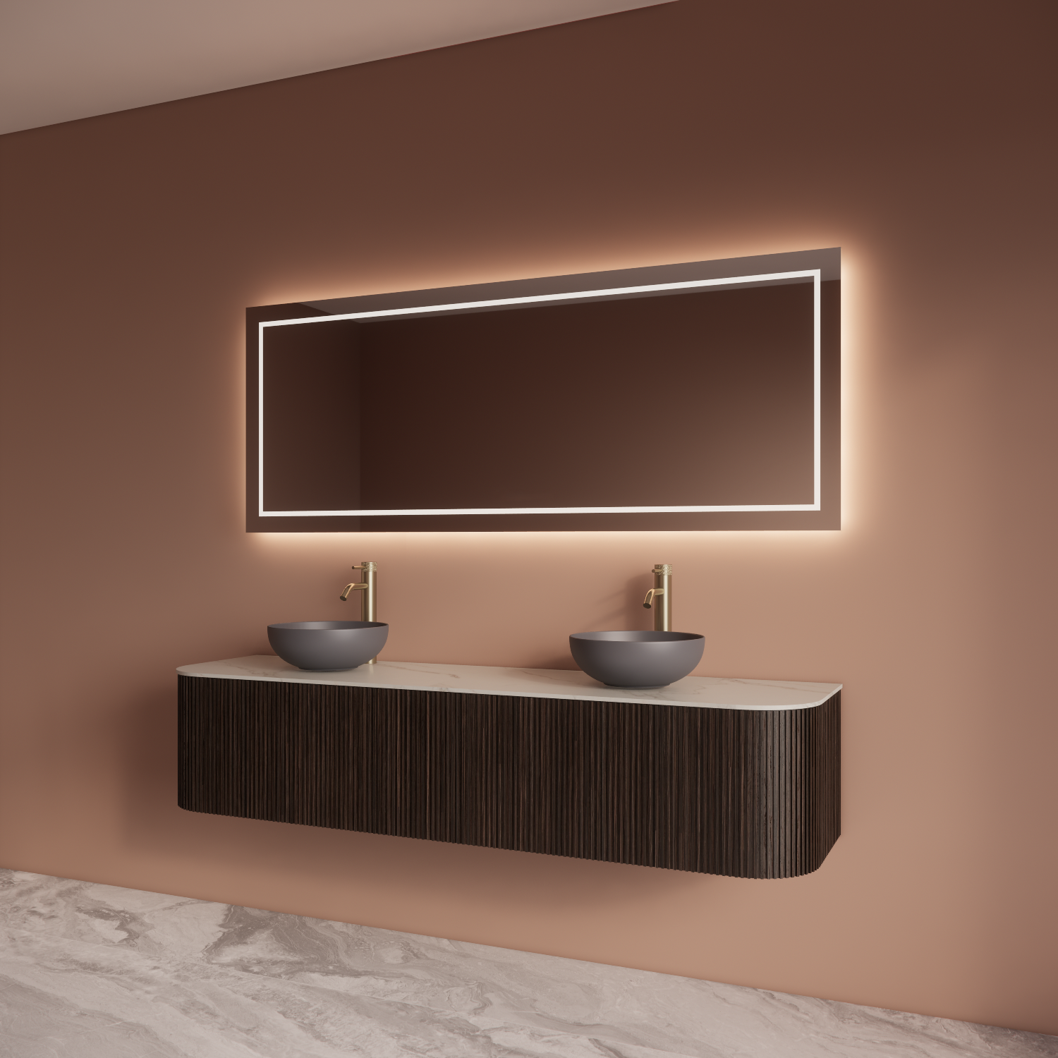 Het Gliss Design Alluro badkamermeubel is meer dan een kast voor de badkamer — het is een statement van stijl en vakmanschap. Met zijn royale breedte van 180 cm en een luxueuze Ebony houtafwerking is dit badmeubel ontworpen voor wie exclusiviteit en verfijning zoekt. Het opvallende ribbelfront met vloeiende curve aan de zijkanten volgt de laatste trends in badkamermeubels, zonder in te boeten op functionaliteit.