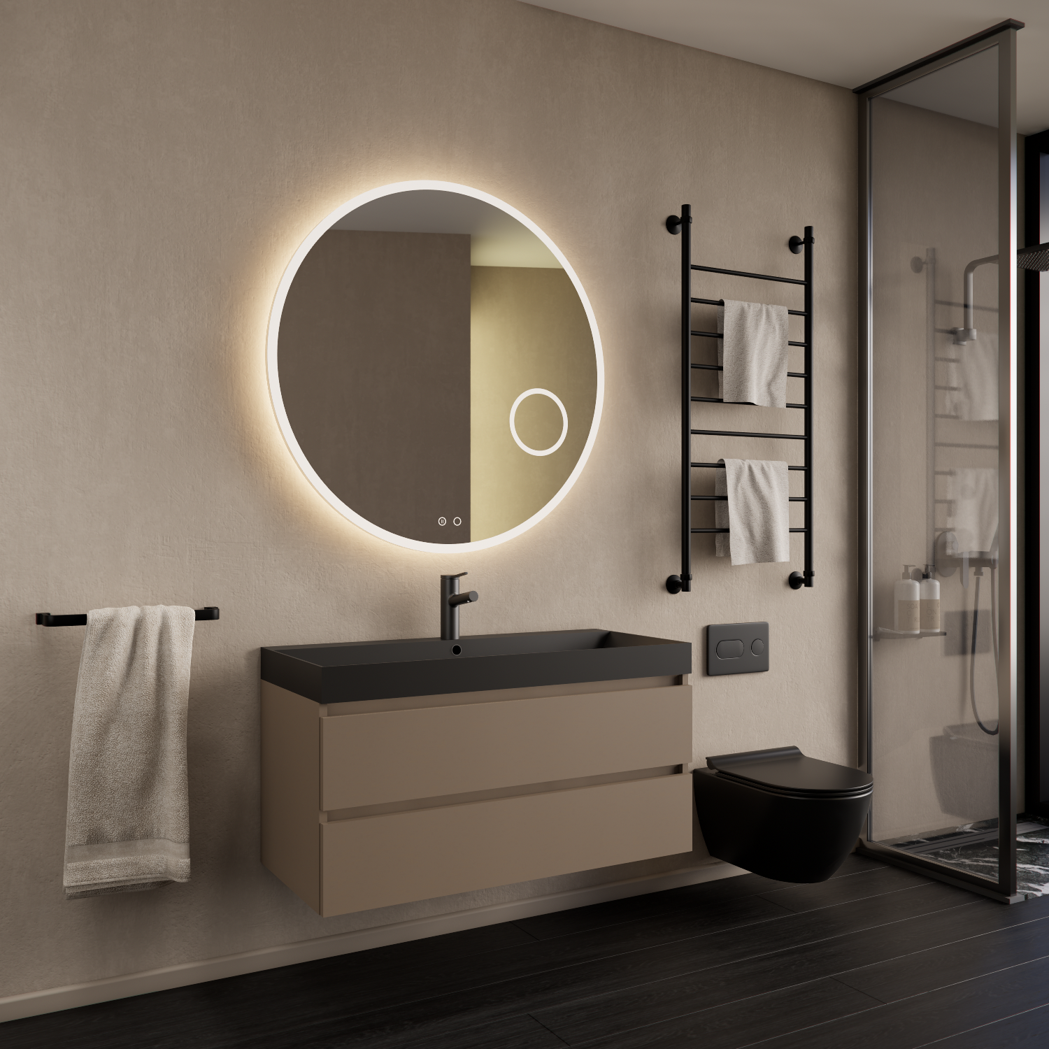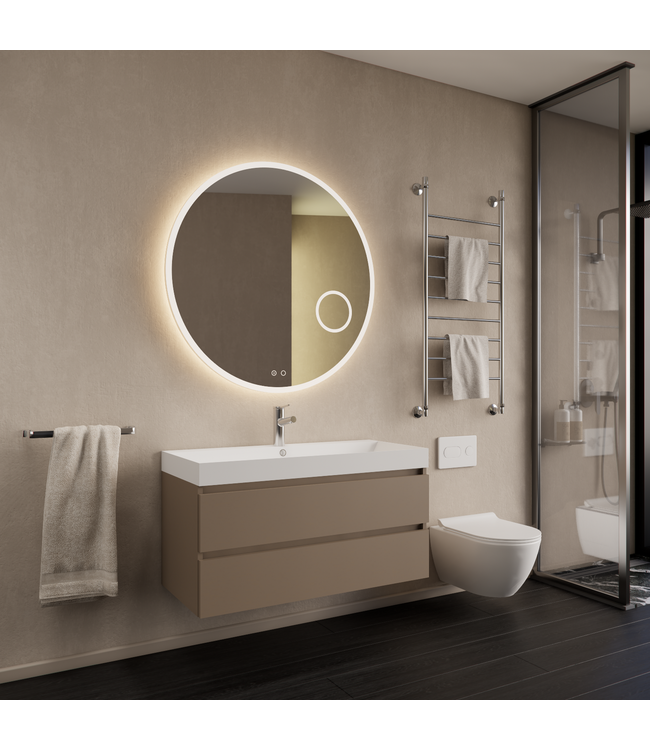 Het Gliss Milan badkamermeubel in Latte Kasjmier combineert een warme kleur met functioneel design. De kleur straalt rust en luxe uit, en is perfect te combineren met zowel witte als donkere wastafels. Dankzij de modulaire wastafelmogelijkheden (van Glans Wit tot Mat Zwart) past deze onderkast wastafelmeubel in elk badkamerinterieur.