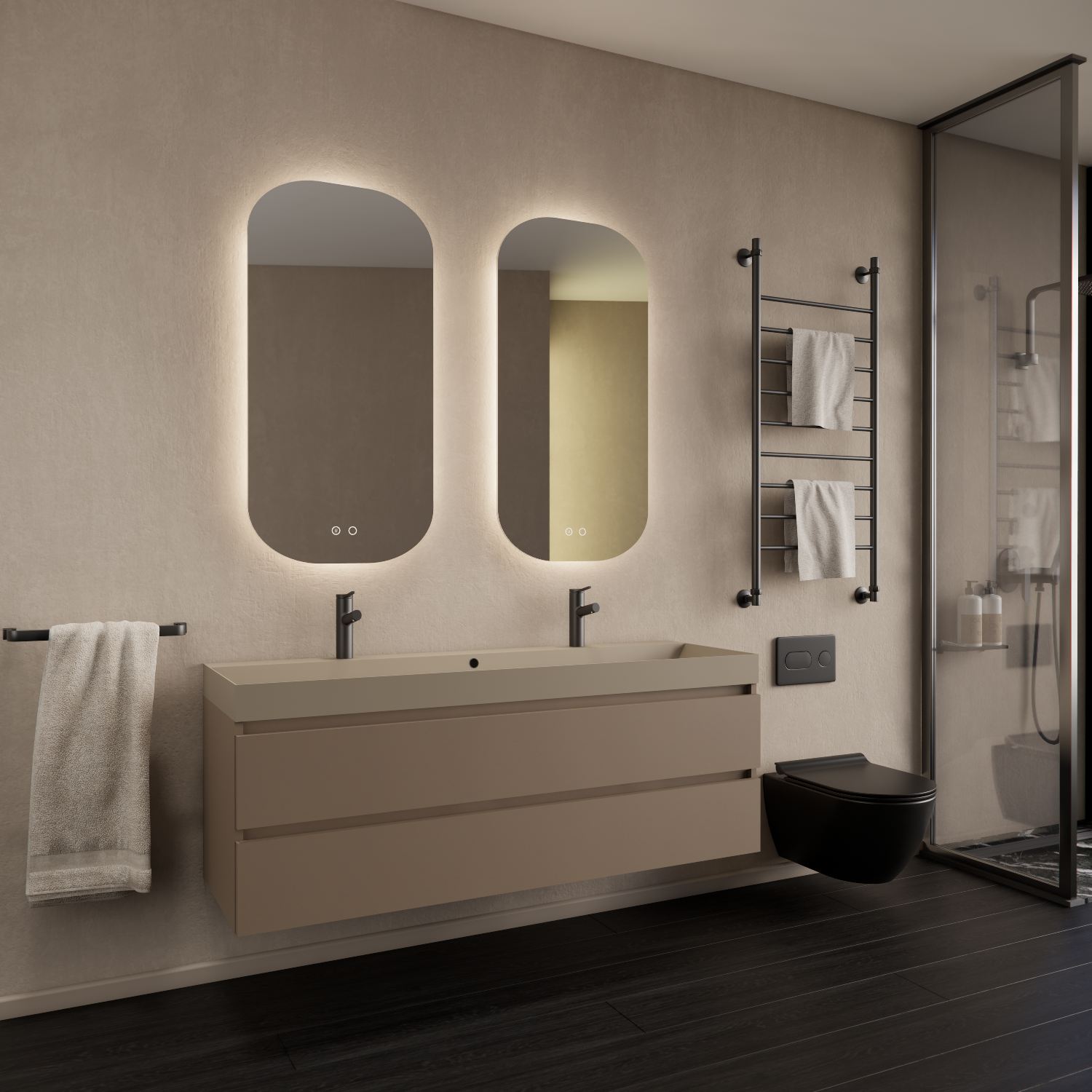 Breng verfijning in je badkamer met het wastafelmeubel Gliss Milan in de warme kleur Latte Kasjmier. Dit badkamermeubel van 140 cm combineert modern Italiaans design met hoogwaardige afwerking. De matte beige tint voegt rust en elegantie toe aan elke badkamerstijl – van minimalistisch tot luxe wellness.