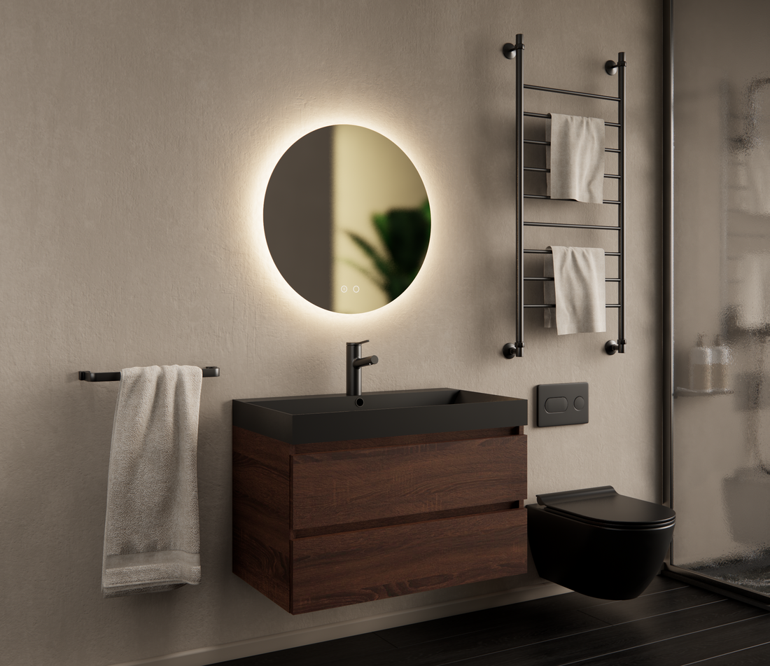 Gliss Design Wastafelmeubel Milan Choco Eiken Walnoot 80 cm met Wastafel naar keuze