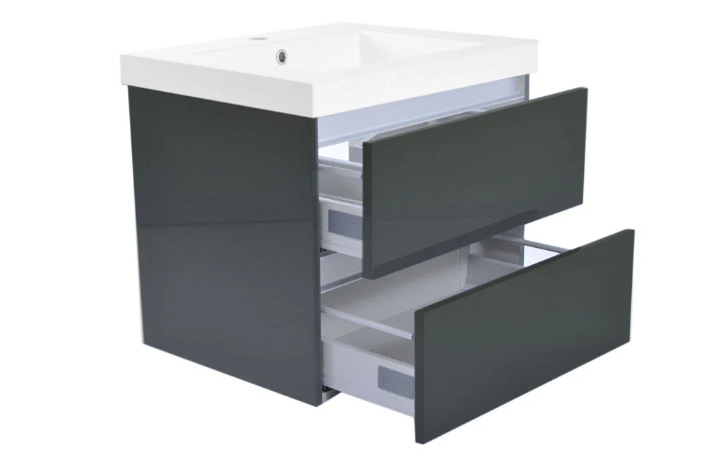 Wastafelonderkast excl. wastafel ✓ 590x452x500mm ✓MDF hoogglans gelakt ✓ 2 ruime lades met veel opbergruimte ✓ Luxe DTC ladesystemen ✓ 5 jaar garantie - 4 maten - RAL-kleur: RAL 7024