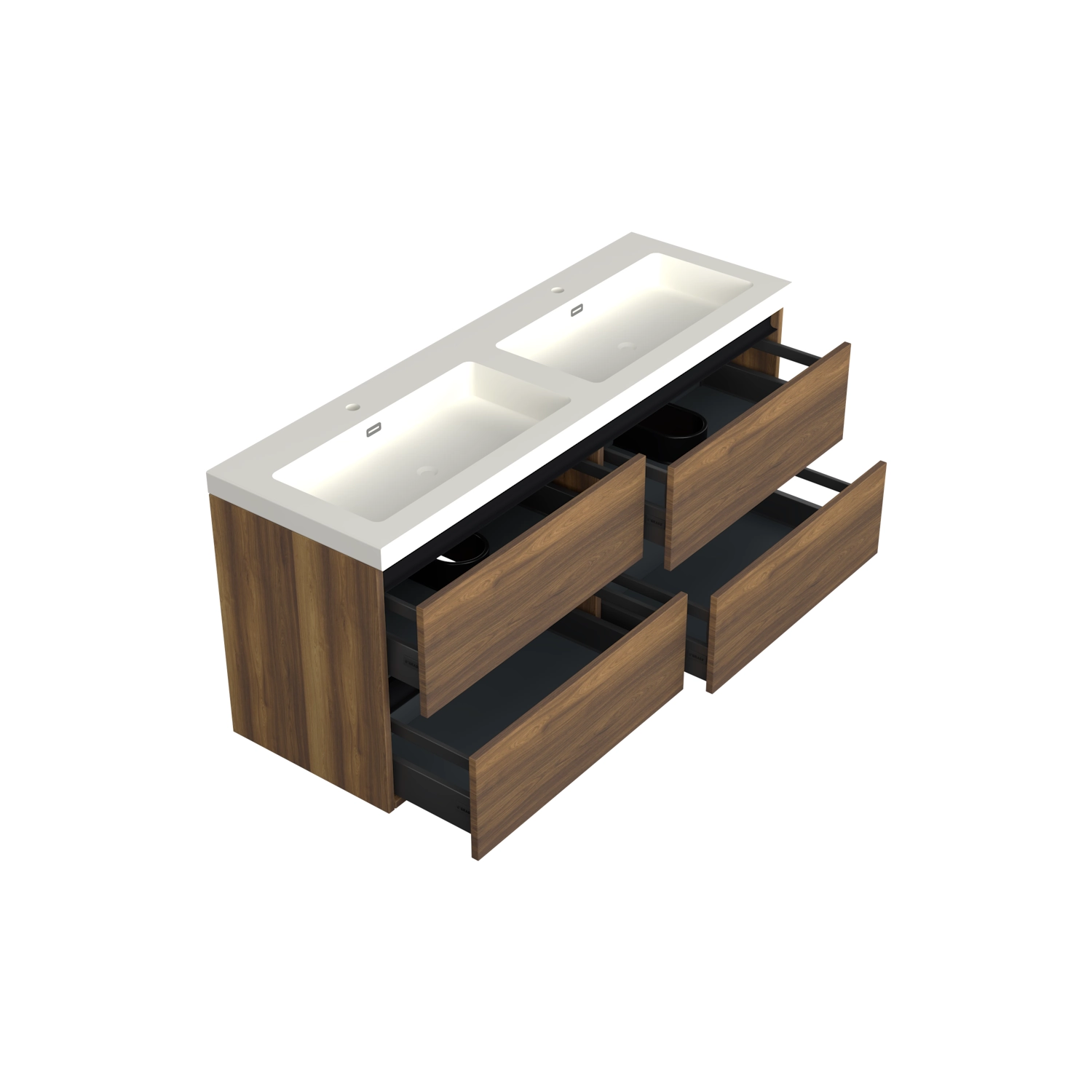 Wastafelonderkast Hamilton Walnoot 4-lades - 140x45x58cm - 2-uitsparingen