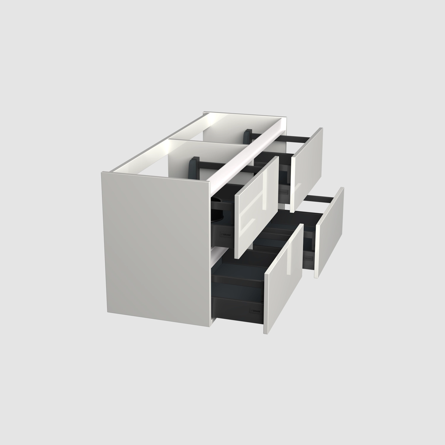 2 sifonuitsparingen in de bovenste lade, geschikt voor dubbele wastafels.